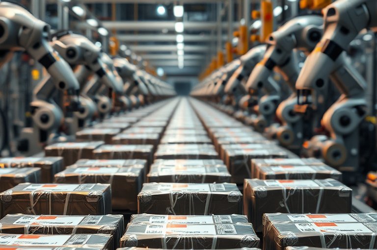 3. 協(xié)同工作:碼垛機(jī)器人將與其他工業(yè)機(jī)器人和自動(dòng)化設(shè)備協(xié)同工作,形成智能化生產(chǎn)線。